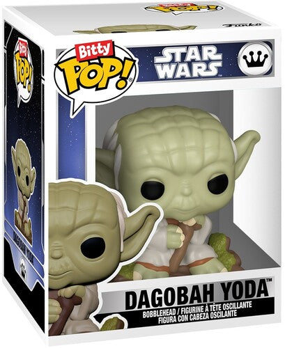 The world of POP! is getting bigger—and smaller—with Bitty POP! collectibles! Expand your Star Wars™ collection with this assortment of Bitty POP! collectibles featuring the most stellar characters in the galaxy! This 4-pack includes Bitty POP! Han Solo™, Bitty POP! Wampa™, Bitty POP! Dagobah Yoda™, and a mystery Bitty POP! figure. The possible mystery Bitty POP! collectibles are Hyper Rare (1/6) Han Solo™ in Carbonite, Hyper Rare (1/6) Bossk™, Rare (1/3) Princess Leia™ (Bespin™), and Rare (1/3) Han Solo™ (Hoth™). Bitty POP! figures are packaged in hard acrylic cases with detachable bottom lids. Detachable bottom lids double as acrylic bases, to which the Bitty POP! figures are adhered. Sort and arrange your Bitty POP! collectibles with the included display case! Acrylic display cases are stackable and hold four Bitty POP! figures each. Vinyl collectibles are approximately 0.9-inches tall. Four collectibles per single package purchase.