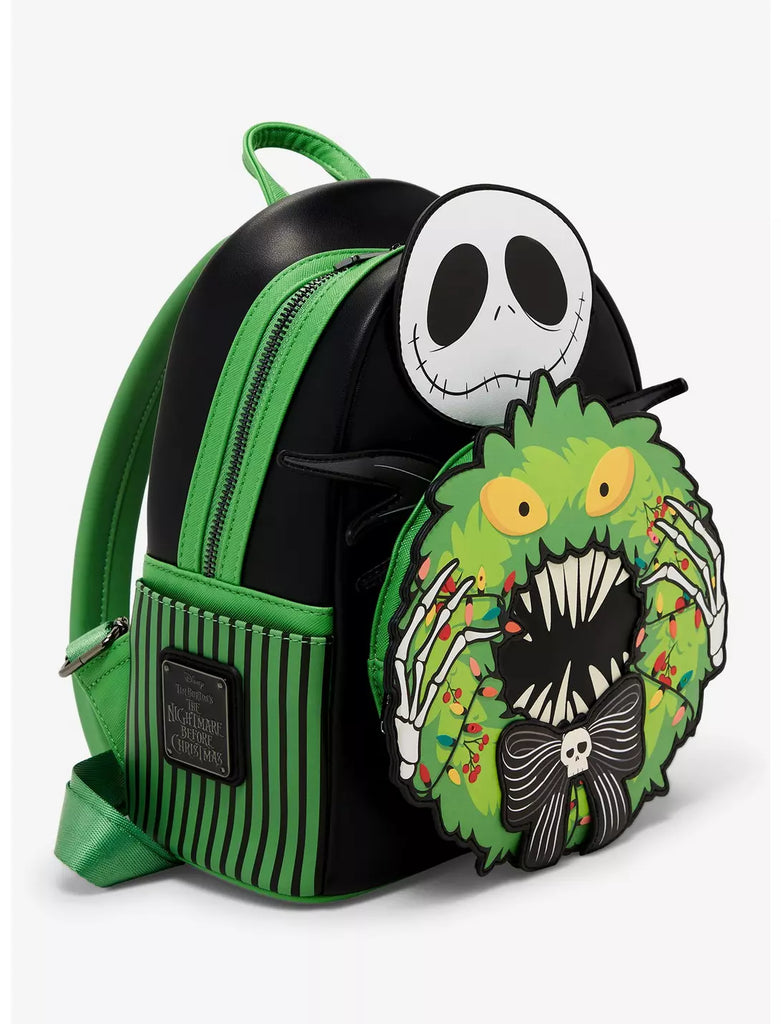 Loungefly Disney The Nightmare Before Christmas Jack Skellington Wreath Glow-in-the-Dark Light-Up Mini Backpack