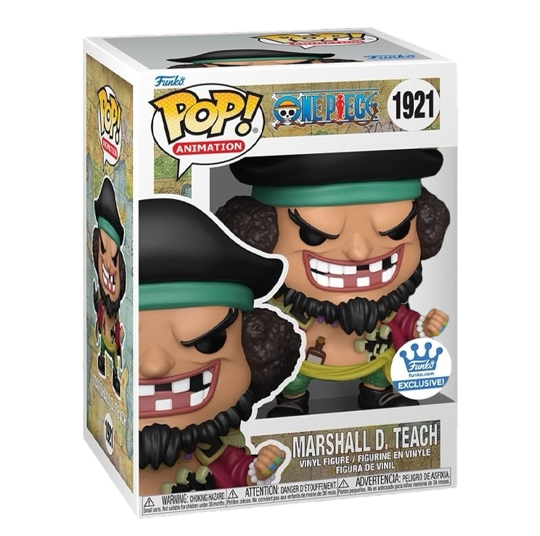 Set sail alongside the Captain of the Blackbeard Pirates with POP! Marshall D. Teach! Expand your One Piece collection by adding this exclusive POP! Marshall D. Teach to your scurvy crew. There's a 1 in 6 chance you may find the powered-up chase of POP! Marshall D. Teach. This figure comes in a Petez Popz protector, is perfect for preventing damage to your collectible. Vinyl figures are approximately 5.05 in (12.8 cm) tall.