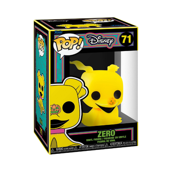 Spend the Halloween season with your favorite character from the animated film, The Nightmare Before Christmas! The Nightmare Before Christmas Zero Blacklight Pop! Vinyl Figure measures approximately 3 3/4-inches tall. Featuring vibrant colors and blacklight effects! Comes packaged in a window display box.